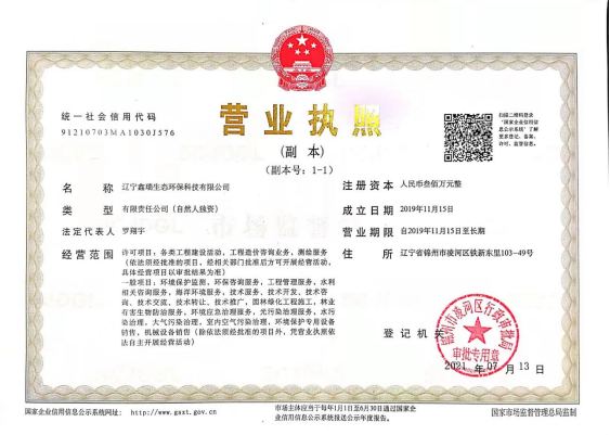 【辽宁省生态环境自动监测设备运营维护机构名录管理登记申请-基本信息公开-辽宁鑫瑞生态环保科技有限公司】